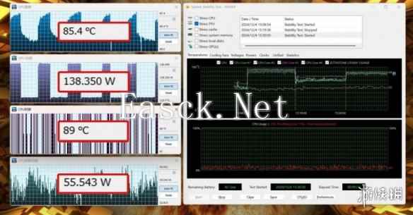 CPU+GPU双拷机测试,处理器稳定功耗释放为55W,显卡为140W;处理器平均温度89℃,显卡平均温度85.4℃。可以看出暗影骑士·擎6的散热设计和功耗释放都很不错。