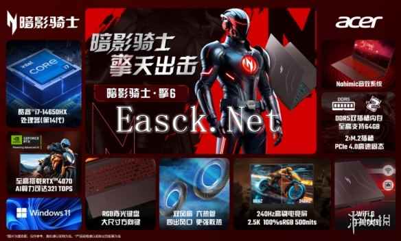 Nitro信仰ID设计,电竞氛围感拉满了! 新款暗影骑士·擎6采用了英特尔®酷睿™i7-14650HX处理器(第14代)以及GeForce RTX 4060笔记本电脑GPU的配置,并且最高可以选择RTX 4070笔记本电脑GPU,而其总体价格聚焦于7000-8999价位段(优惠前官方挂价),总体来说比同配置的其它一线游戏本便宜大概500-1000元左右。而另外一些配置相同但比它价格便宜的产品,大多是采用公模,在品质和设计感上就不如暗影骑士·擎6给劲儿了。这款机器整体模具由金属材料打造,配色为星芒黑。整机重量为2.4kg,厚度22mm,就16英寸的尺寸来说有着较好的便携性。