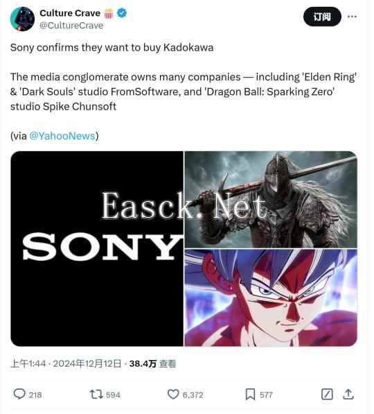 快要被收购了?索尼确认有兴趣收购FS社母公司角川集团