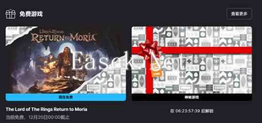 快科技12月13日消息,Epic本周正式开启神秘游戏连送模式! 首款喜加一神秘游戏已正式公布,本周是《指环王:重返摩瑞亚》,免费领取时间截止至12月20日0点,感兴趣的玩家不要错过了。 下周继续神秘游戏。