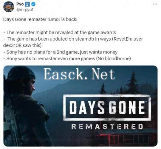 最近网上有爆料称,索尼计划重制或复刻《往日不再》,将登陆PC/PS5。虽然索尼目前并未确认,但指向这一消息的迹象日益明显。