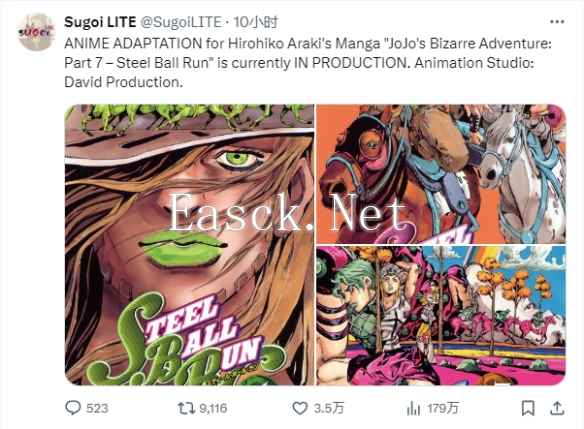 爆料:《JOJO的奇妙冒险:飙马野郎》将被动画化