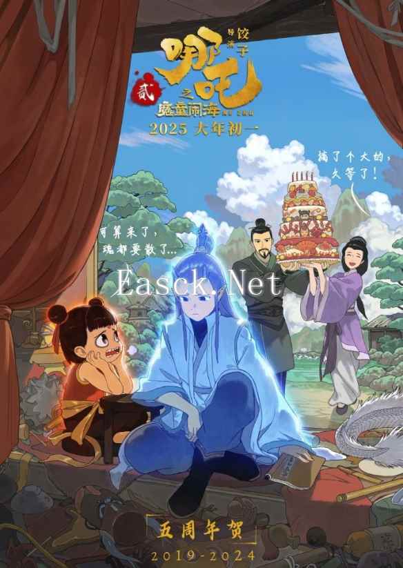 动画巨制《哪吒之魔童闹海》将在2025年大年初一正式上映,官方在微博放出了一组贺图,从2019年至2024年,哪吒与敖丙一路成长。