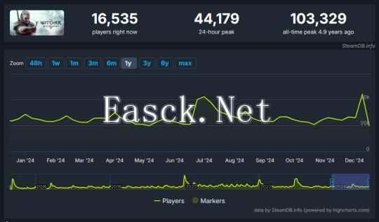 在《巫师 4》首个预告片于 TGA 2024 上公布后,前作《巫师 3》Steam 同时在线玩家数量在近日创下新高,达到了 44,179 人,这是今年的最高值。上一次出现这样的人数变化还是在 2022 年末,当时《巫师 3》次世代更新上线。