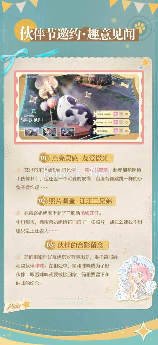 《无限暖暖》在今日宣布,将于12月19日开始推出【伙伴节】活动。 在伙伴节活动中,搭配师们可以参与【接受邀约】剧情任务,【供电大作战】挑战以及【趣意见闻】见闻任务,并获得对应的奖励与称号。 随着本次活动上线,游戏内还将推出两套全新的能力套装:蛙蛙风尚&梦泽流光。 奇想衣橱丨蛙蛙风尚「能力套装」 “呱呱帽蛙是我们花愿镇最亲切可爱的邻居与朋友。” 为了响应格蕾丝镇长的这番话,花愿镇开展了“呱呱帽蛙”服饰风格赏,现将获得最佳人气奖的作品进行公示。