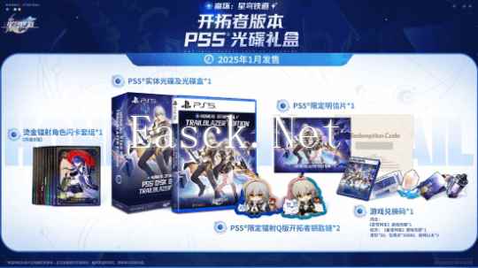 包括: 1)PS5®实体光碟及光碟盒*1 2)烫金镭射角色闪卡套组*1(包含角色:流萤、黄泉、砂金、卡芙卡、刃、花火、希儿、镜流、知更鸟) 3)PS5®限定镭射Q版开拓者钥匙链*2 4)PS5®限定明信片*1(内附游戏内兑换码) 5)游戏内兑换码*1:星琼*50、信用点*30000、提纯以太*3以及游戏内限定道具 此外,米哈游还宣布将在X上以抽奖方式送出五部《星铁》主题PS5手柄。
