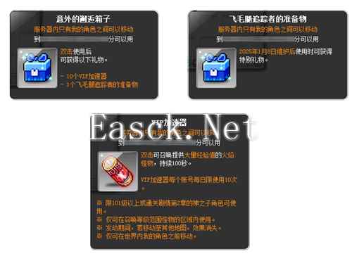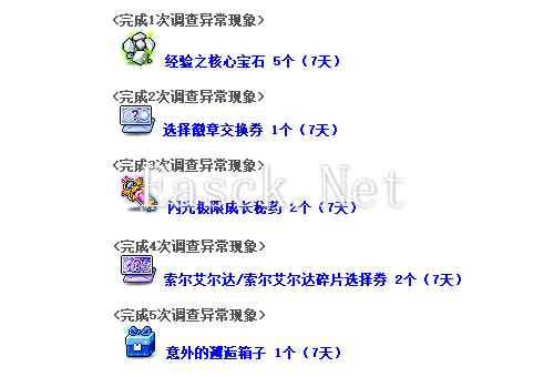 追寻版本预热来袭!调查异常现象! 2025年1月1日起至1月7日,玩家可接取[追寻]调查异常现象任务,和奥尔卡一起调查冒险岛的异常现象,消灭1000个等级范围内怪物,一天完成一次调查异常现象,即可获得对应礼物。