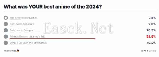 除此之外,在玩家的年度最佳动画投票榜里,《葬送的芙莉莲》也几乎断崖式领先于其他动画。