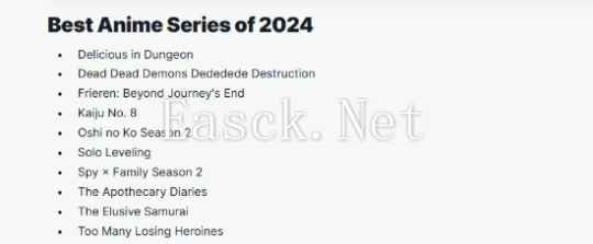 动画提名名单: 《迷宫饭》 《恶魔的破坏》 《葬送的芙莉莲》 《怪兽8号》 《我推的孩子》第2季 《我独自升级》 《间谍过家家》第2季 《药屋少女的呢喃》 《擅长逃跑的殿下》 《败犬女主太多了!》