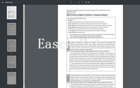 此外任天堂高级常务执行官兼公司董事高桥伸也评论道:“我相信,通过扩展少数开发人员的想法,而不是在每款游戏上投入大量资金,可以创造出规模虽小但值得打磨的独特游戏。虽然总体研发成本在上升,但有些产品的开支保持相对稳定,这取决于我们的方法。” 而资深执行官兼公司董事Ko Shiota则补充说:“因为我们已经熟悉任天堂Switch,所以在未来的开发环境中保持类似的基础将使我们能够延续已经积累的经验(意味着这一模式将在Switch 2中延续),这将随着时间的推移降低研发成本。”