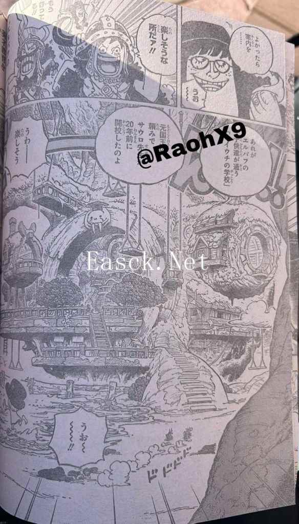 甚平:“我们根据贝加庞克的指示,把它从蛋头岛带了出来。里面是什么?” 莉莉丝:“是我!!” 路飞(震惊地):“贝加庞克的克隆人?!” 莉莉丝:“没错。和我们这些分身不同,这可是完全复制的本体!! 这个贝加庞克就是20年前到访过艾尔巴夫的那位!! 之前如果发现“本体”从研究所消失了几个月,政府自然会怀疑,对吧? 我们通过把他放入营养培养液中成功地将他带了出来,但我们缺少把他安全取出箱子的机械!!” 莉莉丝表示,她会留在艾尔巴夫,建造一个新的研究所,利用这个克隆体复活贝加庞克,同时也帮助治疗大熊。波妮听到后非常兴奋。 巨人们要带草帽一伙参观学校,而罗宾、萨乌罗、乔巴、莉莉丝和波妮则要上到「猫头鹰图书馆」。从外观上看,学校建筑与“猫头鹰图书馆”非常相似。