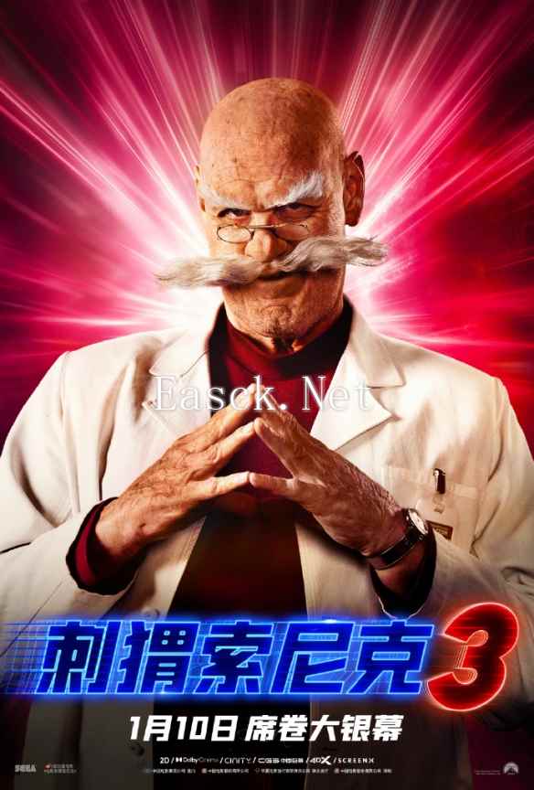 《刺猬索尼克3》"电力十足"全角色海报 明年1.10上映