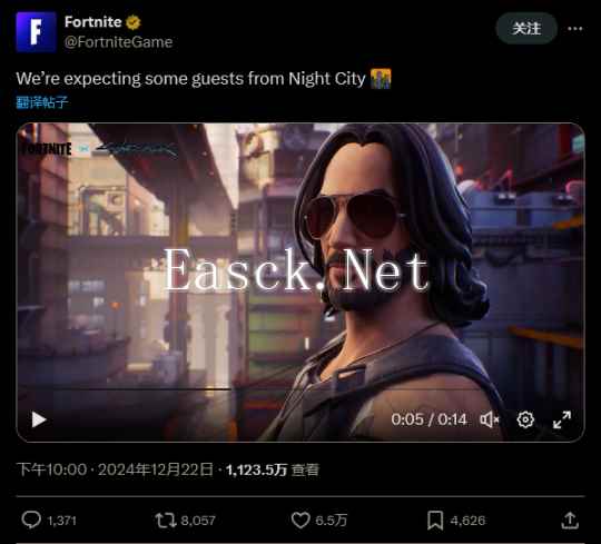 值得一提的是,这将是基努・里维斯饰演的角色第二次加入该游戏。早在 2019 年,其主演的热门动作电影《疾速追杀》中的角色约翰・维克就已作为外观加入游戏,此次他又将以强尼银手的形象出现。通常情况下,《堡垒之夜》的联动都会包含捆绑包。据泄露消息,捆绑包中将包含《赛博朋克 2077》的 “螳螂刀” 近战武器,以及 “小平头” 机器人替代背包。