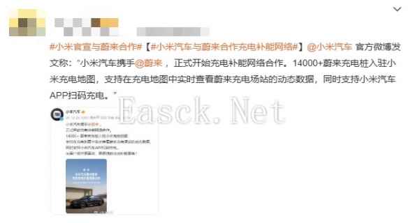 小米汽车官宣将于蔚来合作 共筑电动汽车充电新生态