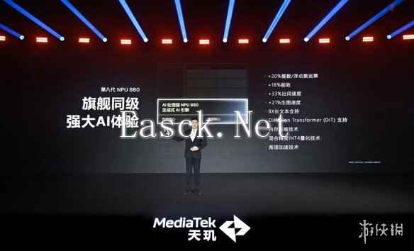 全大核CPU、旗舰级 GPU 性能结合天玑星速引擎的诸多游戏优化技术,天玑 8400 凭借多项“同级无敌”的表现,为年轻玩家带来了流畅且持久的游戏体验,成为游戏玩家的首选芯片担当。 同级最强AI:承袭旗舰实力,智慧体验拉满 天玑 8400在AI性能上的表现同样让人惊艳,它搭载了新一代旗舰AI处理器NPU 880,相比上一代,大语言模型处理速度提升33%,长文本处理能力提升8倍,图片生成速度也提升了21%。这一系列先进的旗舰级AI 技术,将加速端侧AI智慧体验加速向主流市场普及。