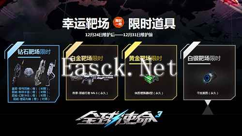 在最新版本的“圣诞响叮当”活动中,《全球使命3》为玩家带来了丰厚的奖励。完成指定游戏任务,玩家即可领取钻石子弹,还能获得包括战神-致命潜伏、超能-寒霜先锋、暴君-末日审判等在内的9件珍贵道具。钻石子弹是射击钻石靶场的必备物品,每累积十发即可尝试一次射击,每一次射击都蕴藏着获得靶后惊喜道具的机会。此次活动诚意满满,让玩家在节日里尽享射击乐趣与丰厚收获。