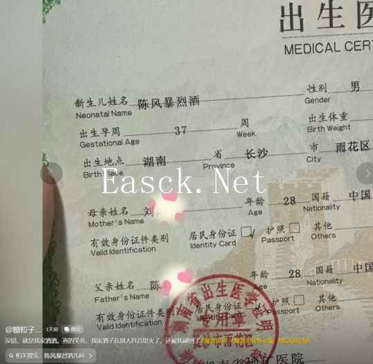 最近,一张名为《陈·风暴烈酒在挂儿科急诊》的照片意外走红网络。 就在大家讨论这是不是有人在P图炒热度之际,孩子的爸妈居然主动现身,还晒出了出生证明!