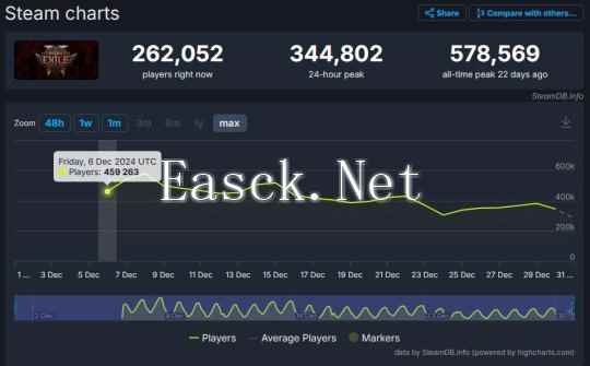 本月推出抢先体验版本的类暗黑刷子游戏《流放之路 2》,一经推出便十分火热,根据 SteamDB 的统计数据,游戏首日在 Steam 平台的在线峰值接近 46 万,堪称现象级作品。