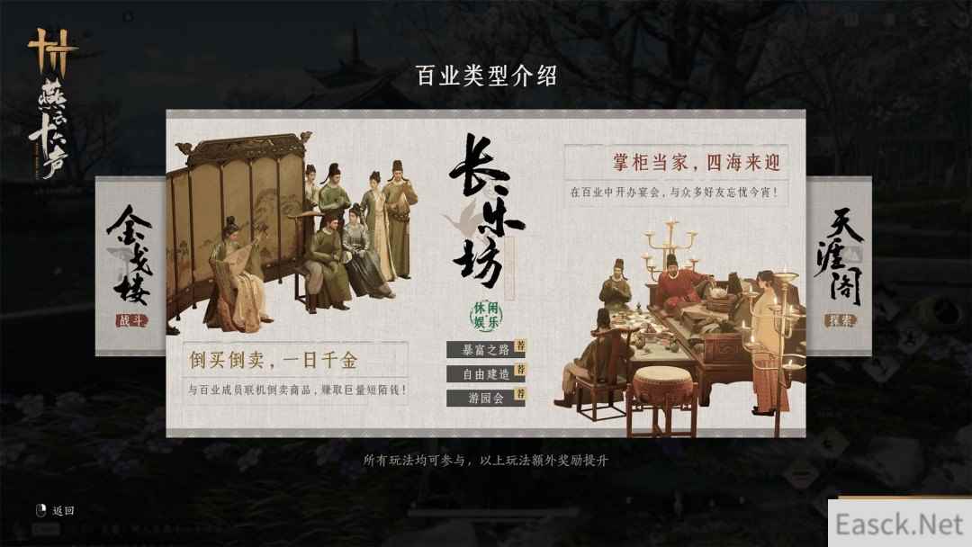 3、“百业”玩法即将上线:官方正在打磨“百业”玩法,提供多种选择,包括江湖聚义、休闲摆摊、自由探索等,满足不同玩家的喜好。