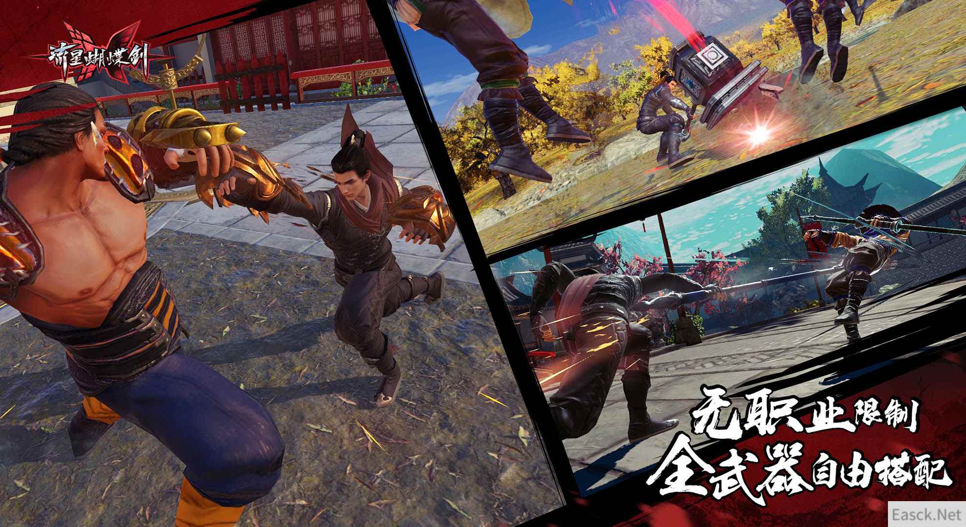 《流星蝴蝶剑》中没有职业的区分设定,枪剑拳锤唐刀,五种武器任意选择,招式绝学自由组合,易武系统可以在战斗中随意切换主副武器,连击手法更加个性。 装备的特性系统、饰品的套装效果,让玩家可以开发更多流派打法,回复、爆发、群攻、远程、连击、道具等各种流派任君选择,本次比赛中,新武器游龙剑与心如铁的搭配便展示了强悍的连段效果。