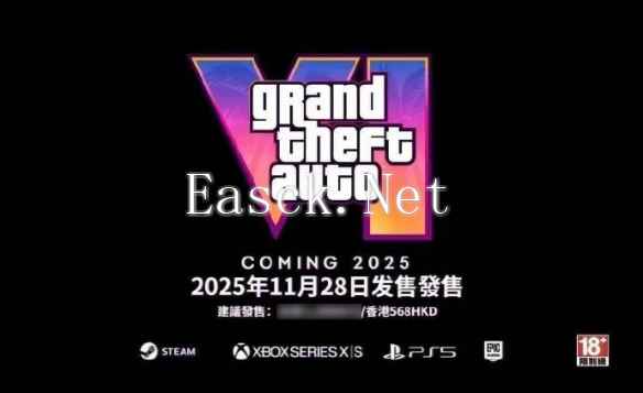 刚刚,网络流出了一张疑似为《侠盗猎车手6》发售日期的图片,图片显示《GTA6》将于今年11月28日正式发售,中国香港地区 游戏售价为568港币。