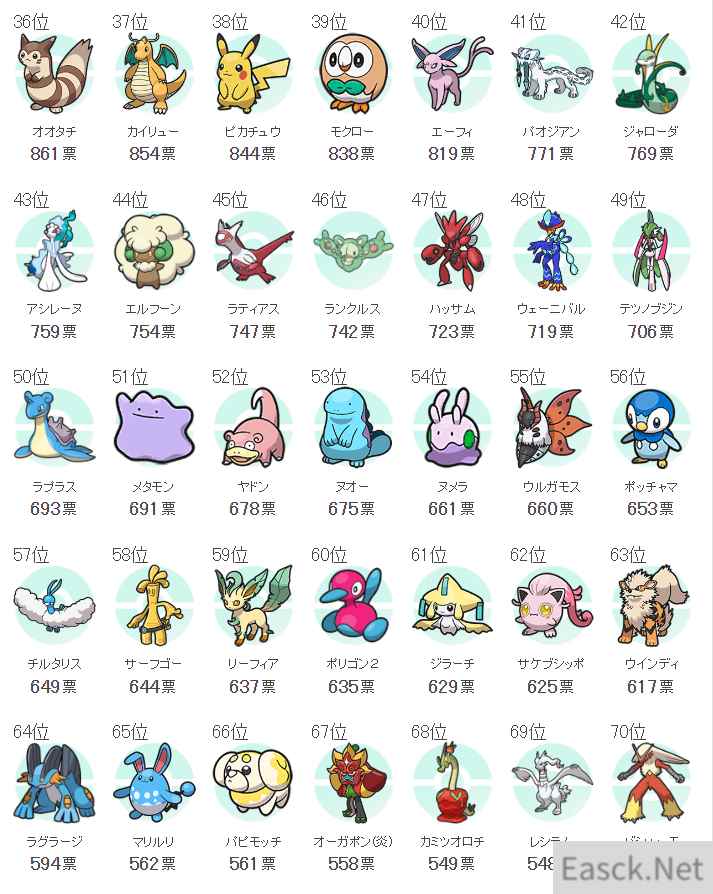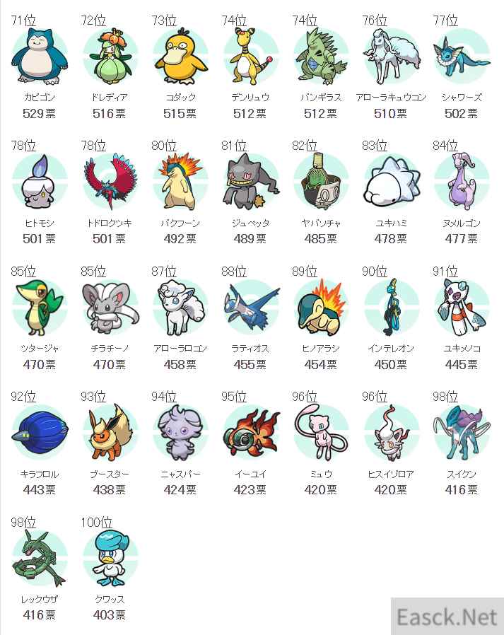 前100名完整票选结果: