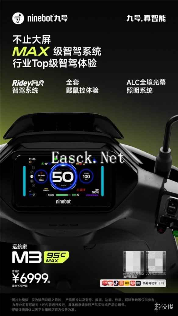 超高性价比的市场竞争力 九号公司在发布会上宣布,M3 95c MAX的零售价为6999元,首发优惠价仅需6399元,同时部分平台还提供6期免息优惠。相比其他同级车型,M3凭借强大的产品力、旗舰级的配置以及超高的性价比,成为市场中极具竞争力的选择。