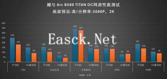 网游方面我们主要测试了一些市场上比较热门的网游,选择《CS2》、《无畏契约》、《永劫无间》、《APEX》以及《PUBG》这五款很有代表性的游戏。从结果来看,不论是1080P分辨率还是2K分辨率,每个游戏都有着不低的帧数。凭借着这张撼与 Arc B580 TITAN OC显卡,玩家们可以通吃市面上的竞技类游戏,搭配市面上主流的高刷电竞显示器即可体验丝滑流畅的竞技体验。 通过一系列的测试,我们可以窥见,作为Intel第二代独立显卡,这张撼与B580 TITAN OC不仅拥有出色的颜值和扎实的堆料,并且无论是生产力工作还是游戏场景都不落下风。并且得益于全新Xe2-HPG架构与新一代的XeSS 2技术的加持,以及英特尔对硬件、软件生态的不断更新与完善,让这张撼与 Arc B580 TITAN OC的战未来属性直接拉满!考虑到其首发2000左右的价格,如果你还在考虑搭建一台生产力与游戏同时兼顾的性价比主机,这张撼与 Arc B580 TITAN OC显卡都将会是你的不二之选。 0 |