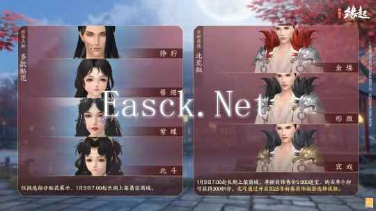 全新肩饰「北荒飙」&妆容上新 全新「北荒飙」系列肩饰震撼上架!银肩红羽、银肩黑羽、金肩黑羽三种配色任君选择。金属质感与飞舞羽翼完美结合,尽显气吞山河的江湖豪气。 新年新气象,焕然一新的美丽从这里开始。多款贴花全新上架,设计各具特色,不同风格随心搭配,轻松展现侠士的独特魅力! 售卖信息 全新肩挂「北荒飙」1月9日7:00起长期上架商城,单侧肩饰售价5,000通宝,购买单个即可获得300积分,也可通过开启2025年新春肩饰福袋选择获取。 仅挑选部分贴花展示,贴花1月9日7:00起长期上架易容商城。
