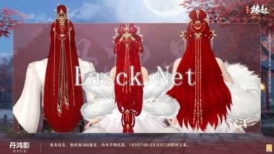 新春贺岁红发「丹鸿影」 年华流影,鸿飞万里,新春贺岁「红发·丹鸿影」翩然登场! 成男款儒雅从容,金冠束发,流苏轻垂身后,尽展君子之风与温润气度;成女款端庄典雅,赤色长发如流火垂落,点缀珠光华饰,尽显雍容与高贵;萝莉款灵动俏丽,金饰点缀花枝绾发,宛若春日雀跃,散发纯真可爱; 售卖信息 售价38,000通宝,均为不绑定款, 1月9日7:00-2月12日7:00限时上架。