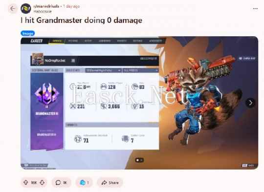 未来,《幻兽帕鲁》还将举办全球人气投票活动,相应的纪念周边也在制作中。 ? 《漫威争锋》玩家零击杀上大师 作为一款团队竞技游戏,《漫威争锋》中极具爽感的对抗和快节奏的对决一直都是本作的亮点。然而近期外网一名玩家,却分享了自己零击杀情况下将段位打到大师三的事情。 据悉,这名玩家是火箭浣熊的爱好者。这个角色在游戏中,扮演着“奶妈”的角色。为了让自己的话有说服力,这名玩家还贴出了自己的对局数据,上面显示总治疗量接近300万,助攻3666次、伤害阻挡超过315000次、并获得了71场胜利。
