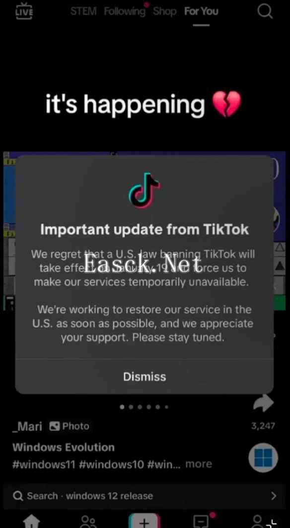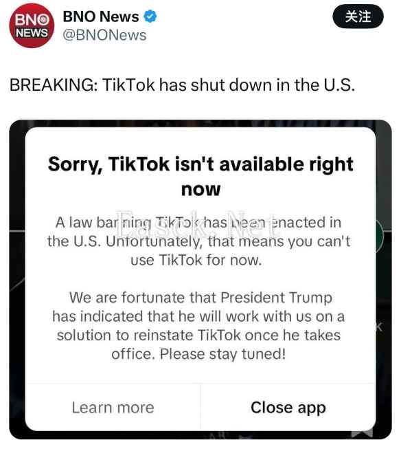 TikTok已在美国正式关闭 官方:会尽快恢复服务的!