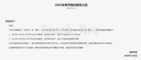 顺丰京东等快递宣布春节不放假 价格会有部分上涨!