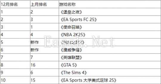 根据市场统计公司 Newzoo 发布了欧美 12 月游戏收入和参与度排行榜。热门大逃杀游戏和社交游戏创作平台《堡垒之夜》重新回到榜首。