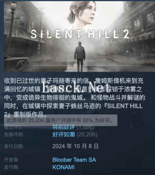 《寂静岭2RE》Steam国区解禁!售价392元起