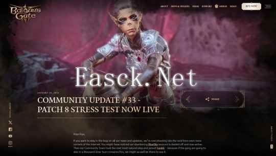 目前《博德之门3》的8号补丁压力测试已经正式开启,玩家可以通过在官网注册来获得PC、Xbox和PlayStation平台的测试资格。 |