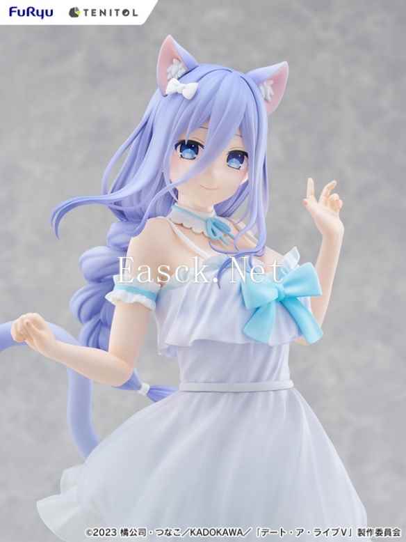 本次推出的「TENITOL TALL 崇宫澪」模型全高约300mm(含底座),属于FuRyu旗下TENITOL系列的TALL版本,采用无比例设计,体型更大,细节表现更加出色。崇宫澪身穿标志性的白色礼服,整体造型优雅而庄重,裙摆与衣袖的细腻褶皱处理展现了极高的制作工艺。模型还原了崇宫澪在动画中的高贵气质与神秘感,其面部表情设计尤为生动,搭配替换用表情配件,玩家可以根据个人喜好调整展示效果,进一步提升了模型的可玩性与收藏价值。