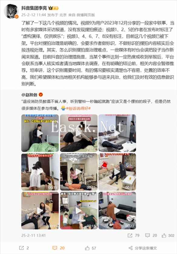 抖音副总裁回应视频“摆拍”乱象:会要求作者做标识