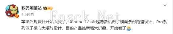 根据微博博主“数码闲聊站”的爆料,苹果的外观设计开始有较大幅度调整。