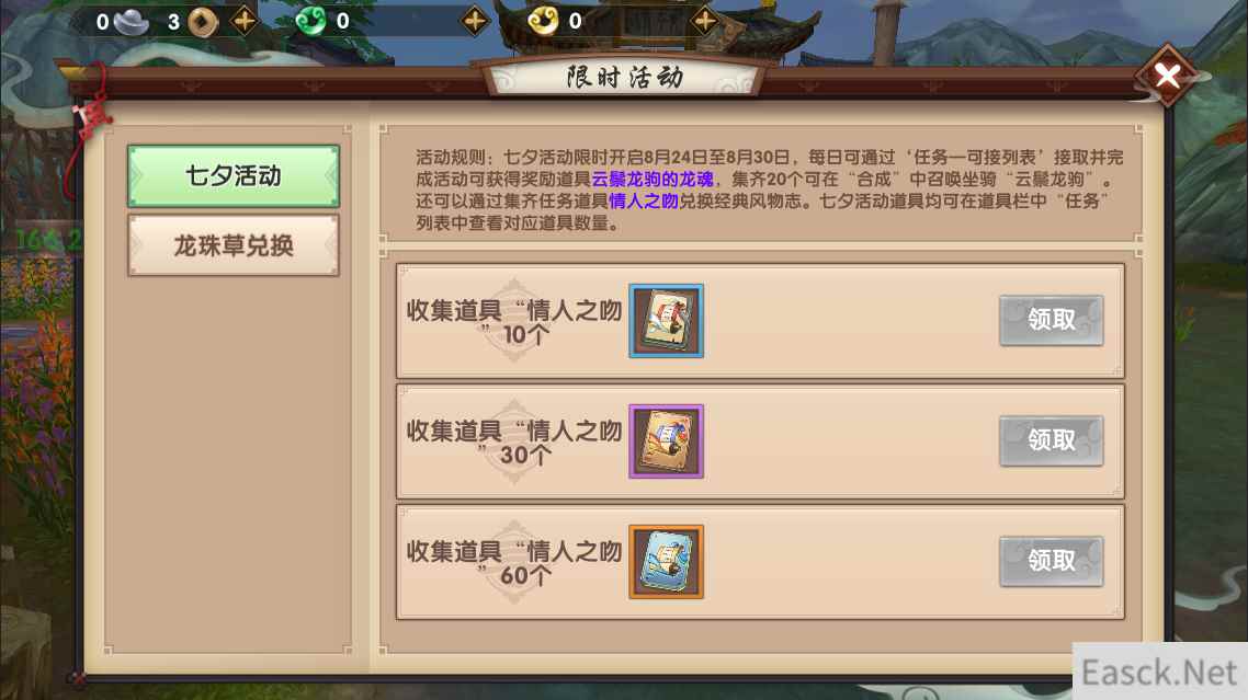 而通过月老和红娘的考验之后,将迎来第三大任务——骑着你最威武的坐骑,去迎接你的爱人!在完成所有任务之后,不仅将会得到“七夕使者”、“鹊桥仙”等稀有称号和关于七夕的风物志,还将得到上品坐骑“云鬓龙驹”的龙魂,集齐20个龙魂,召唤这一匹稀有的龙驹吧!