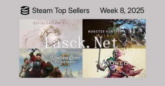 本期具体排名如下: 1.《文明7》 2.《怪物猎人:荒野》 3.《天国:拯救2》 4.Steam Deck掌机 5.《宣誓》 6.《博德之门3》 7.《流放之路2》 8.《艾尔登法环 黑夜君临》 9.《绝地潜兵2》 10. 《NBA 2K25》 《文明7》位列榜首、《怪物猎人:荒野》第二、上期销冠《天国:拯救2》排名第三。黑曜石新作《宣誓》位列第五,FS社的《艾尔登法环 黑夜君临》开启首轮网测后,也收获了大量玩家的关注,靠着预售登上榜单。