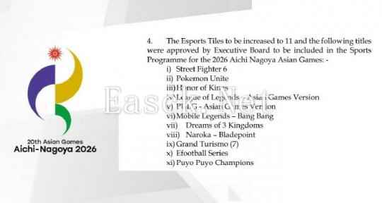 名古屋亚运会的11个电竞项目暂定如下: 《街头霸王6》 《宝可梦大集结》 《王者荣耀》 《英雄联盟》 《PUBG》 《决胜巅峰》 《梦三国》 《永劫无间》 《GT赛车7》 《Efootball》 《魔法气泡冠军》