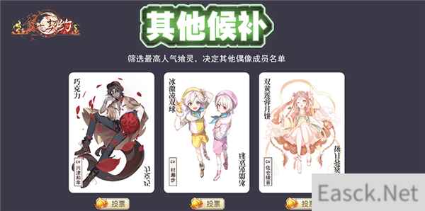 海选中新一轮的人气冠军,将优先享有代言游戏与第三方厂商联动的特权,届时,所有御侍大人都将享有与之对应的免费美食礼包和游戏礼包等福利,御侍大人每天享有一个投票机会(PK与海选不重复),还可召集小伙伴至游戏官网,天天为你的爱豆打call哦。 应援将至,尽显风采,《食之契约》应援大会即将上线,人气对决一触即发,偶像天团等你来建,人气最高将会是哪一位飨灵呢?更多精彩内容,更全活动预告,请关注《食之契约》官方网站。 |