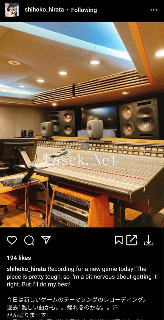 因《女神异闻录4》而名声在外的女歌手平田志穂子(Hirata Shihoko)透漏,她近期正在为一个未公布的游戏录制歌曲。