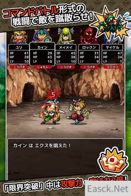 游戏采用回合制的指令式战斗,只要通过点击屏幕的简单操作即可在任何地方、任何时间进行战略部署。“攻击、法术、必杀”等各种攻击方法、“限界突破”系统的使用,能最大化玩家的个人力量挑战Boss。