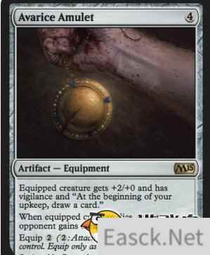 最初在 PAX East 游戏展上,开发商 Wizards of the Coast (威世智公司)就已经公布了他们在为即将上市的《万智牌》系列新游卡牌做准备,设计全新卡牌集 M15 的人员也都非常大牌,比如来自微软的 Notch,来自 Ultima 的 Richard Garriott,来自暴雪的 Rob Pardo 等人,可以说是阵容强大。 在今年的 E3 展会上我们也见到了这款即将登陆 iPad 的新游——Magic 2015 《万智牌2015》的演示版,同时也给了我们机会提前了解到 Penny Arcade 所设计的一张全新卡牌:Avarice Amulet(贪婪护身符)。它的功能是:使装备的角色得到+2/+0的加成效果,并且在回合开始时可以抓一张牌;当装备的角色死去,目标对手获得它的操控权。对于熟悉万智牌的玩家来说,这可是一张非常不错的装备牌。 全新的卡牌都将在全新的游戏《万智牌2015》中出现,作为 Magic 2014 《万智牌2014》的续作它将带来全新的卡牌战略体验,其中还有一个非常重要的改进,就是众多玩家期待已久的自主打造卡牌群组,从零开始收集的乐趣终于正式加入到游戏当中了。一开始只能使用有限的卡牌,到后期就能慢慢解锁和增加全新的卡牌,打造自己想要的战略牌组,非常自由。 《万智牌》系列的游戏在各个平台上的发展时间已有多年,渐渐地它们的发展路线也越发成熟和优秀。《万智牌2015》预计将于7月18日发售,并且将会与《万智牌2014》一样以免费下载加上内购解锁的形式发售,敬请期待。