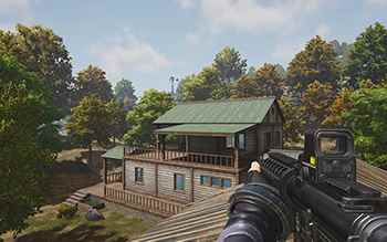 噩梦假期 噩梦假期场景要素齐全,建筑物与湖泊的结合衍生出了伏地魔、水鬼等多种打法,同样需要占领高处获得优势。制高点位于小木屋的房顶,小木屋呈倒“V”形,玩家趴在“V”字的另一边既可以作为掩体抵御攻击,又能借助极高的地势观察全图。