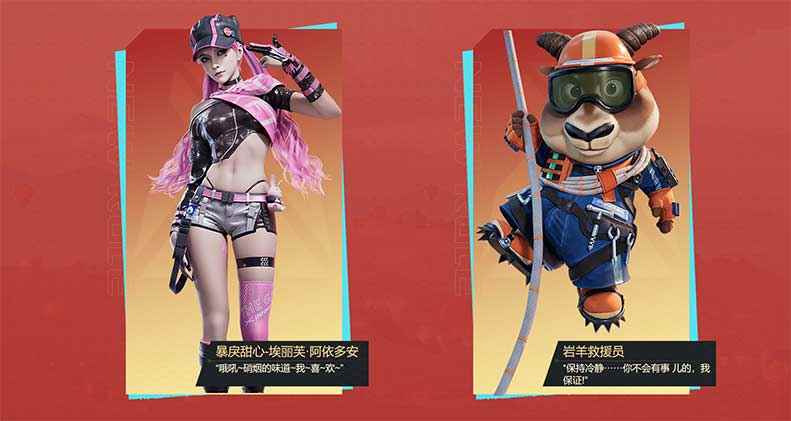 暴戾甜心 元气开战 全新女角色「埃丽芙·阿依多安」登场,一头粉色双马尾惊艳全场,头戴遮阳帽、身披粉红色披肩,外加超短衣裤与帅气皮靴尽显夏日风情与异域色彩。「埃丽芙·阿依多安」可爱的甜心形象元气满满。但与之甜美外表截然相反地是其极具反差感的狂暴性格,手持猛男粉专属武器「狂野袭击 M590A1」轰击一切敌人,硝烟弥漫中响彻少女的甜蜜笑声!此外还有全新大头角色「岩羊救援员」,头戴护目镜,身穿救援衣,装备齐整的他坚决守护每一场大头战争!