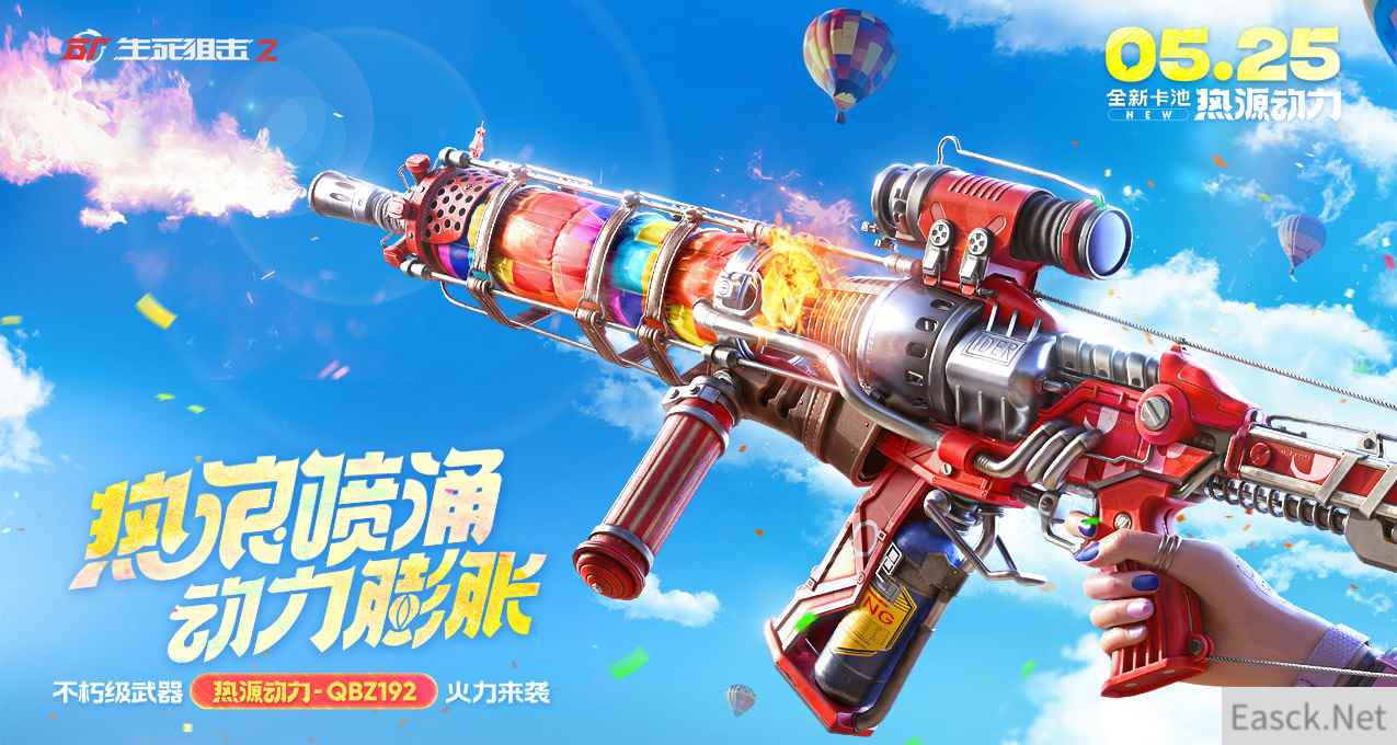 全新不朽 灼热来袭 新版本全新土耳其风格军备系列「灼热飞行家」火热登场,不朽级枪械「灼热飞行家 QBZ 192」夺目亮眼,炫酷的机械质感外壳内,镶嵌进缤纷多彩的布质枪管,宛如装载了斑斓的热气球。充满粗粝工业风格的枪管外框架与金属风枪口相得益彰,仿佛下一秒就能喷涌出灼热烈焰。此外「灼热飞行家 S12K」、「灼热飞行家 Clock 18C」、全新近战武器「双持利爪」与全新烟雾弹也一并加入新军备,助力共赴异域战场!