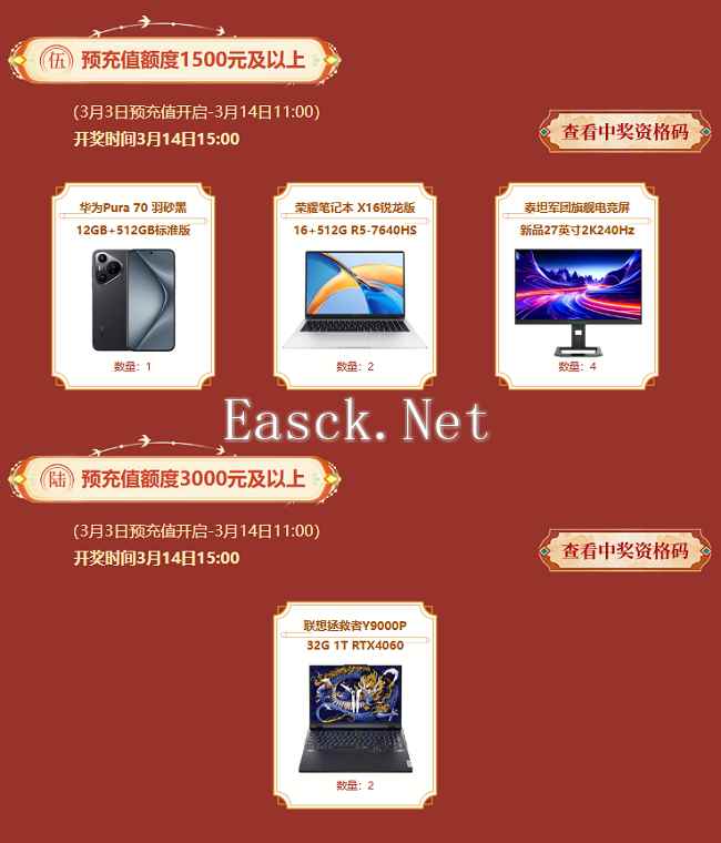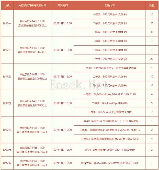 无论是新老玩家,都能在本次活动中享受到丰厚的回馈,2024外星人m16 R2 Ultra9、联想拯救者Y9000P、华为MateBook等笔记本大奖都在其中! 新的征途等你一同启程! 【活动时间】 2025年03月03日开启预充值后-2025年03月14日11:00 【参与方式】 活动已于新服“道十九”开启预充值时正式启动,玩家们只需在该服务器进行预充值,即可参与这场盛大的抽奖活动。预充值阶段,累计充值额达到相应额度,即可获得抽奖资格码,参与抽奖。 【豪华奖励等你拿】 本次预充值大派送活动共分为七个阶段,每个阶段都有不同的奖励,且随着充值额度的提高,奖励也愈发丰厚。以下是各阶段的奖励详情: